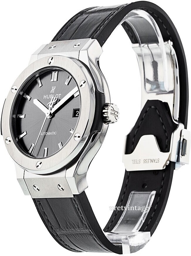 | Armband: | Grått läder |
