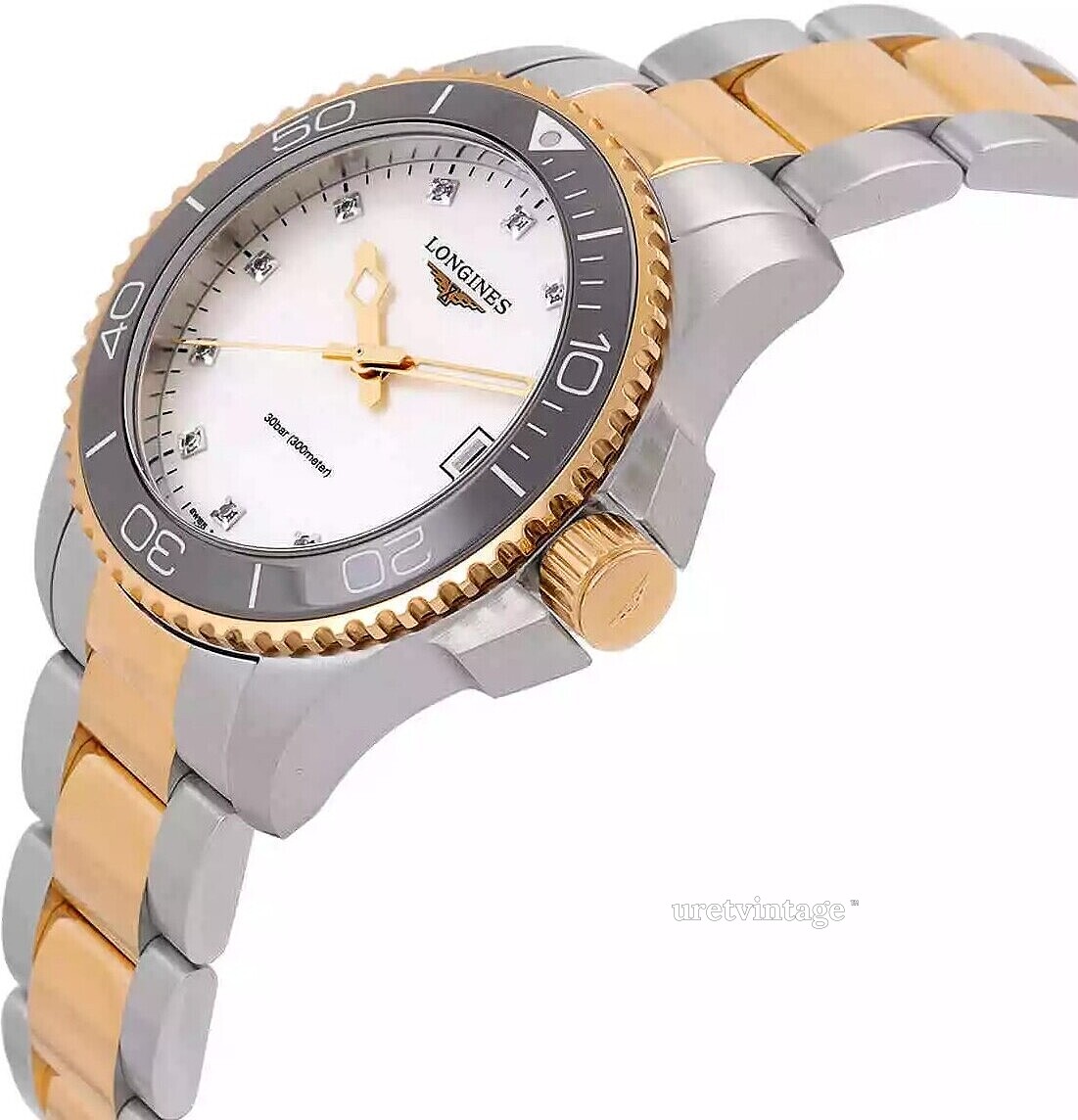 | Urtavla: | Vit pärlemor med diamanter, självlysande visare |