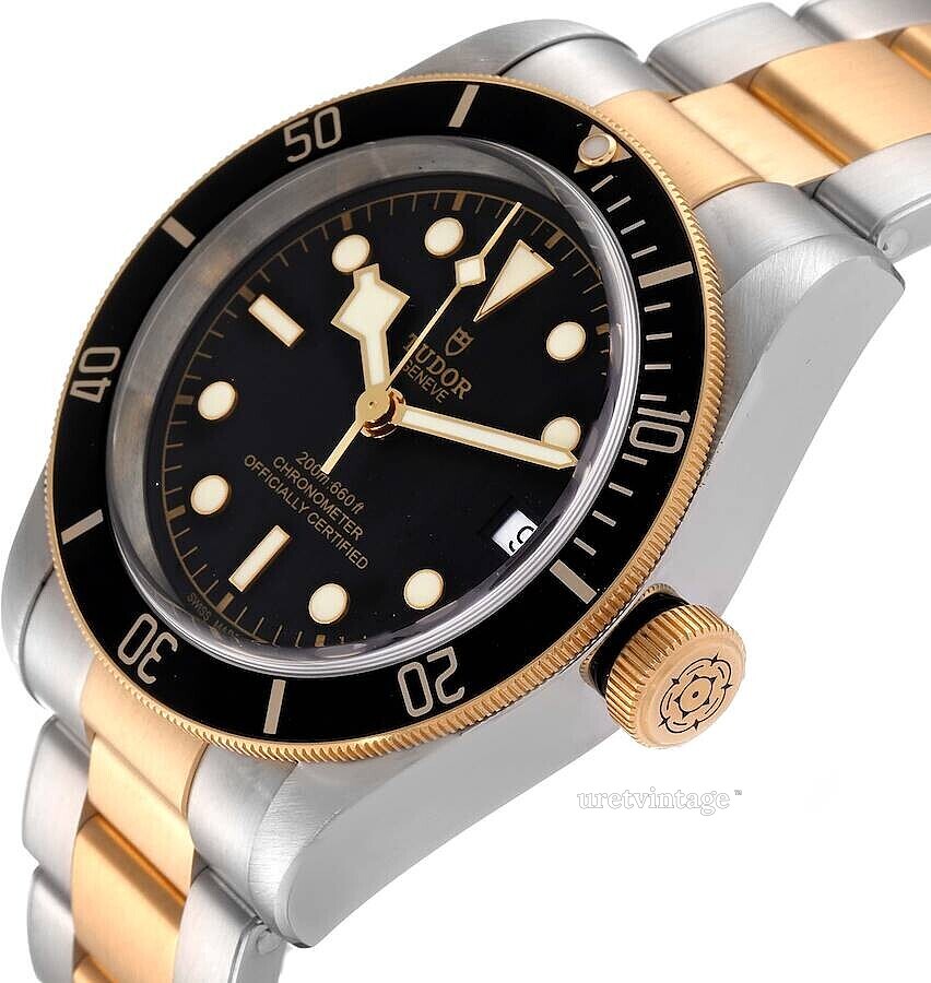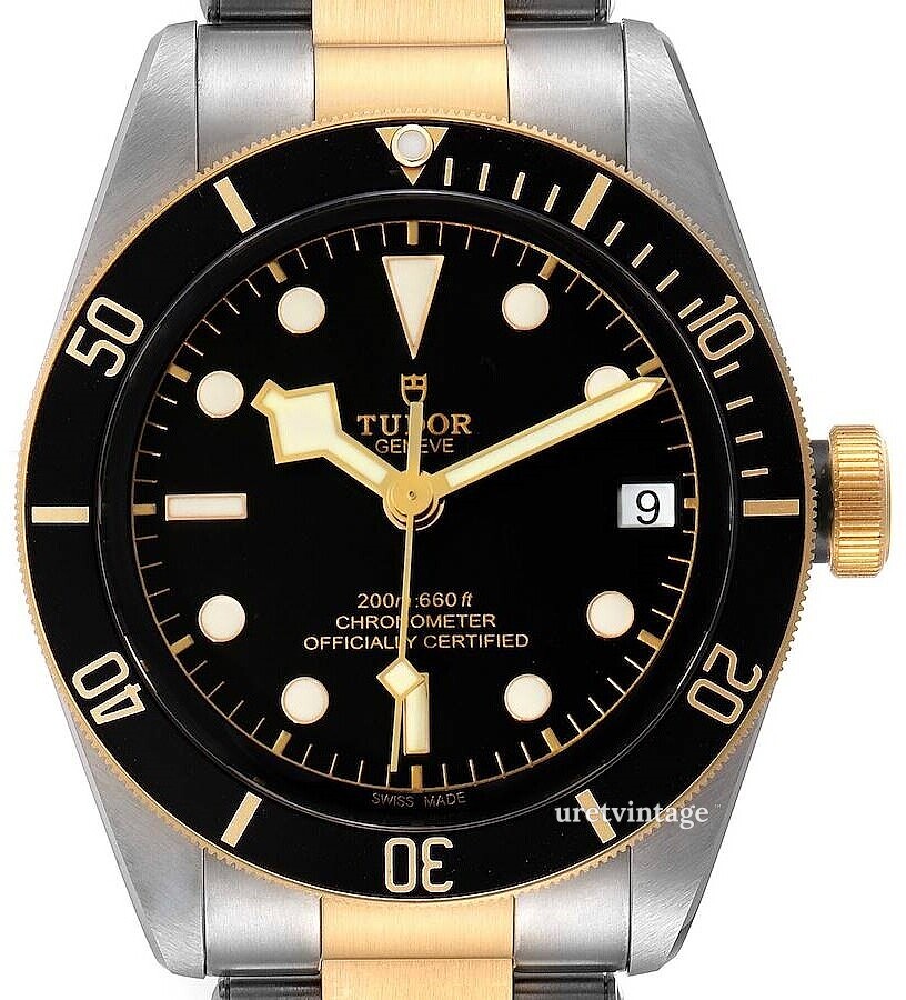| Bezel (ring): | Guldtonat stål, svart, vridbar motsols |