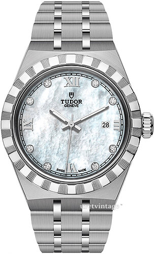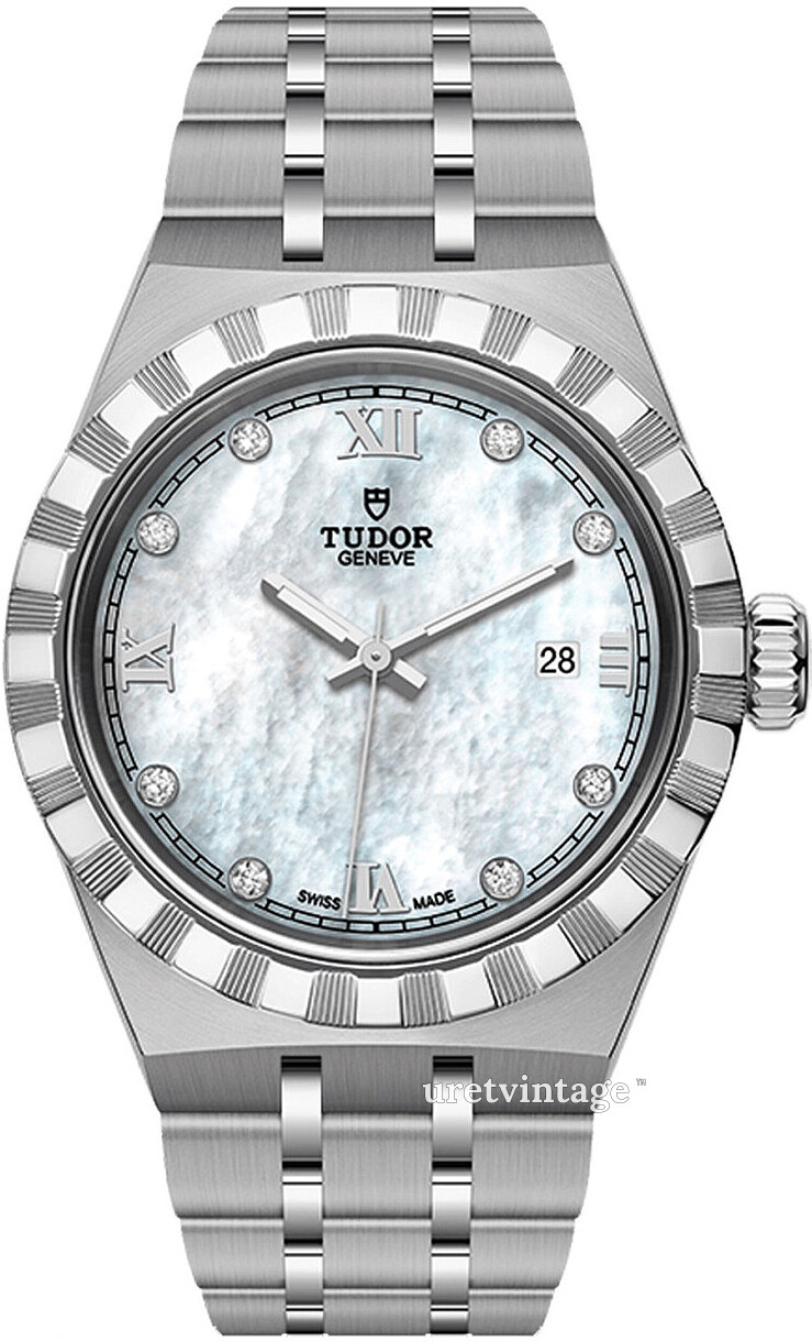| Urtavla: | Vit pärlemor med diamanter/romerska siffror, självlysande visare |