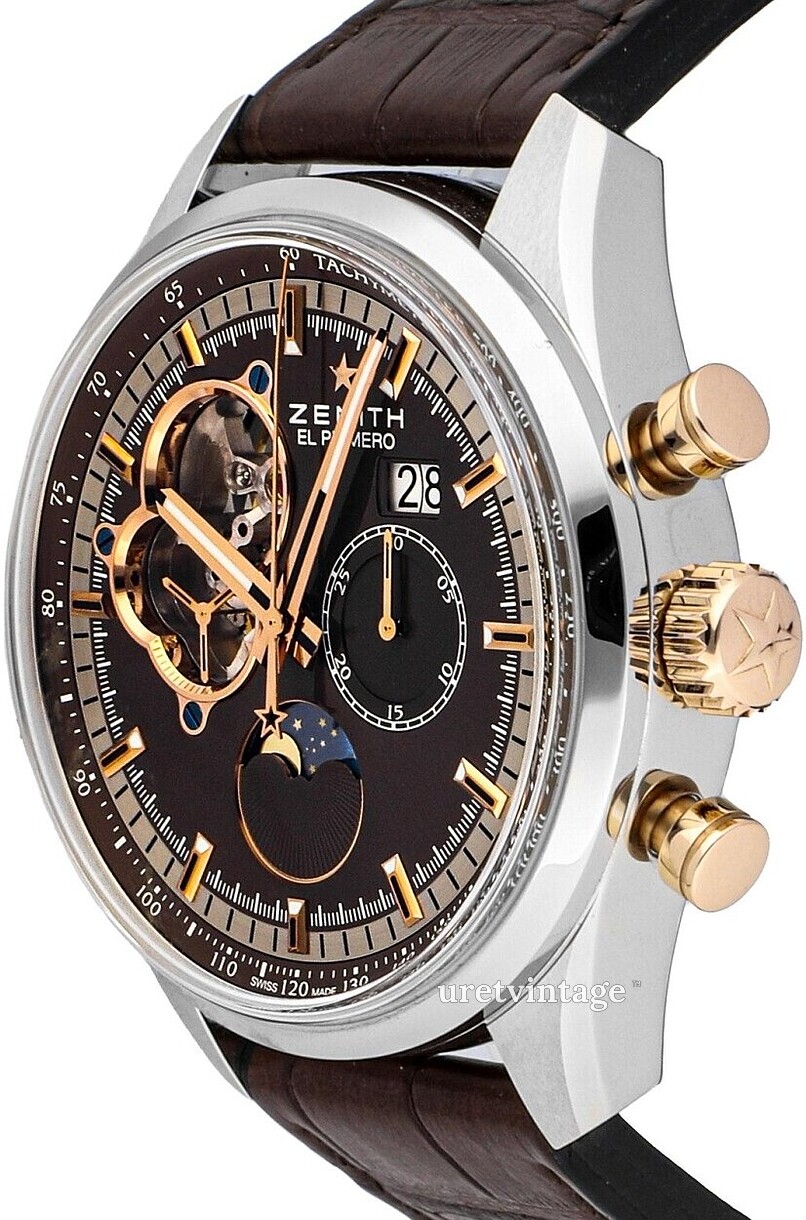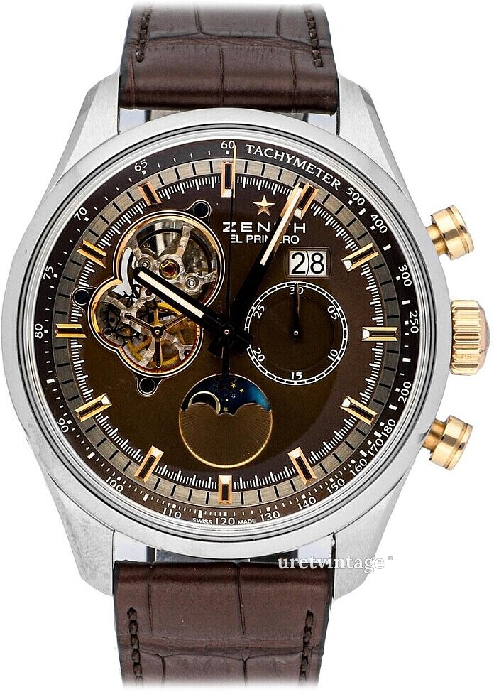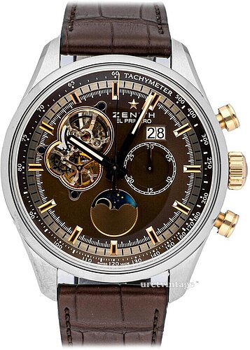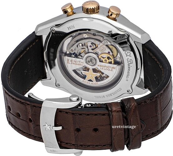 | Urverk: | Zenith El Primero 4047 med 32 juveler, 36000 vph |