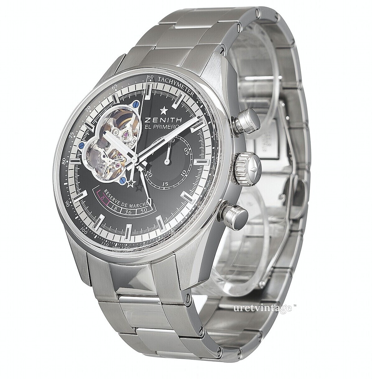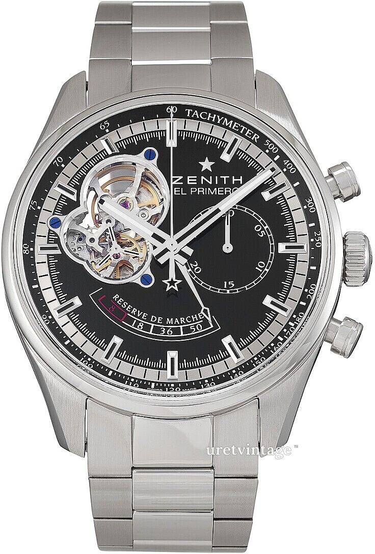 | Urverk: | Zenith EL Primero 4021 med 39 juveler, 36000 vph |