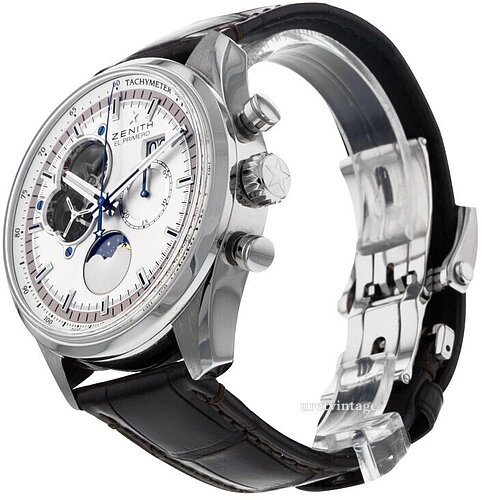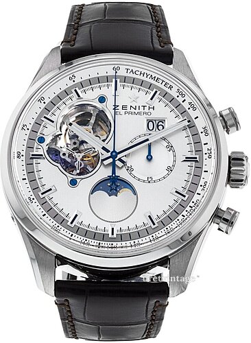| Urverk: | Zenith EL Primero 4047 med 32 juveler, 36000 vph |